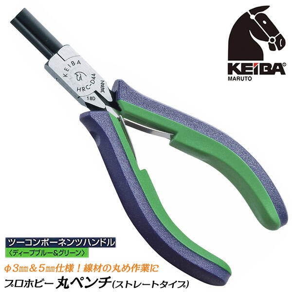 KEIBA プロホビー 丸ペンチ ストレートタイプ Φ3 Φ5 ツーコンポーネンツハンドル ディープブルー&グリーン バネ付 丸め加工 HRC-D44 マルト長谷川工作所