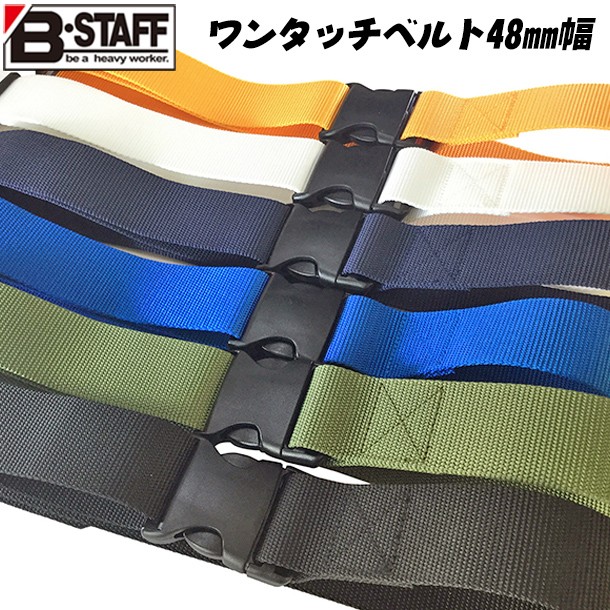 B-STAFF ワンタッチベルト 48mm幅 70~130cm対応 着脱バックル 作業用 ナイロン カーキ ネイビー ブルー ブラック イエロー ホワイト 国産 BBW-48 ベストツール