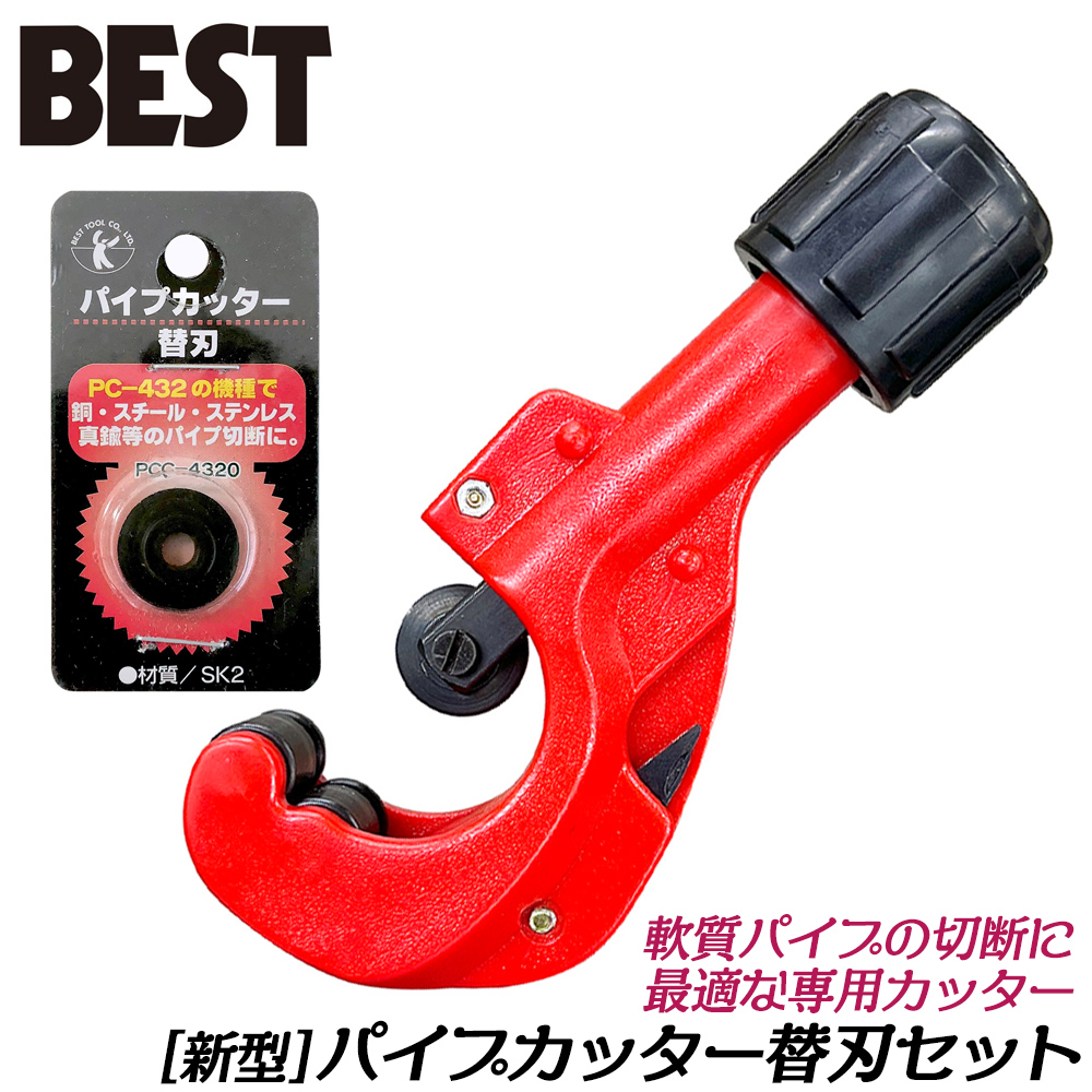 ベストツール 【替刃付セット】 特殊プラスチック製パイプカッター+替刃付きセット バリ取りナイフ付 切断能力φ4〜32mm PC-432 PCC-4320 BESTTOOL
