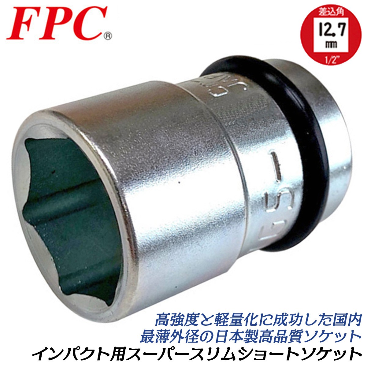 FPC インパクトレンチ用 ショートソケット 10mm 差込角 12.7mm 1/2 オーリングピン付 軽量 薄肉 スリム エアーソケット 4分 日本製 4WGS-10 フラッシュツール