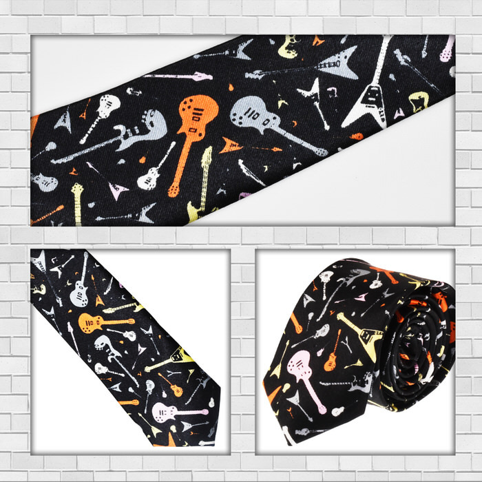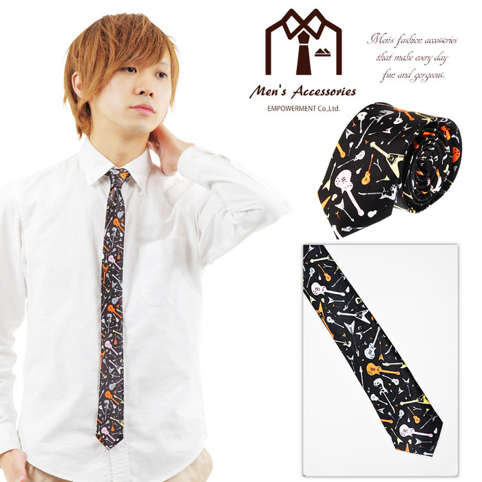 ■商品名 : ネクタイ 音楽 ギター ナロータイ