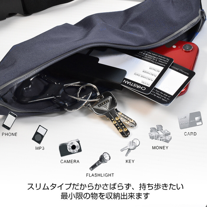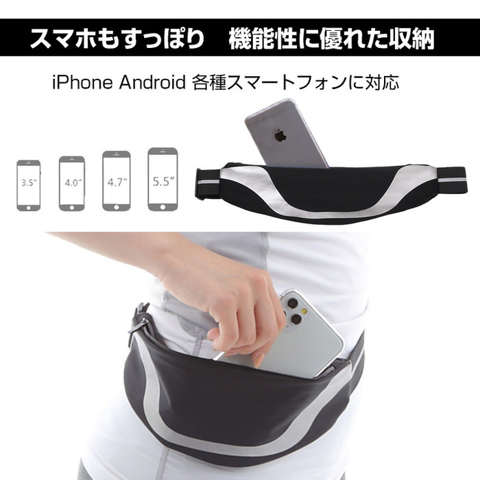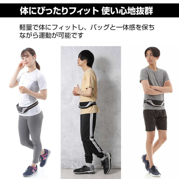 ランニングやウォーキング、ジョギング、マラソン用の軽量シンプルなウェストポーチです。