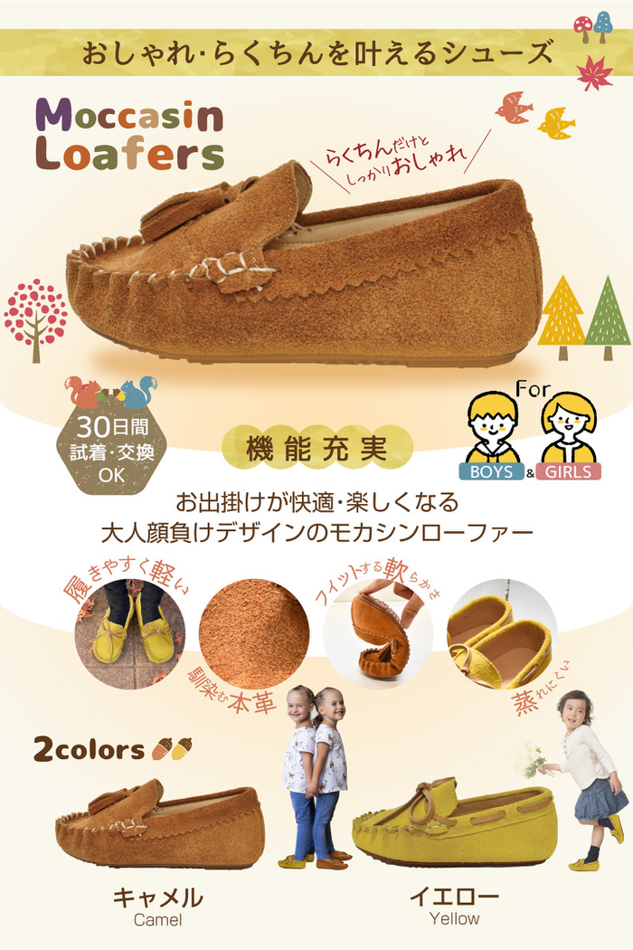 お出掛け が楽しくなる大人顔負けのデザイン モカシンローファー