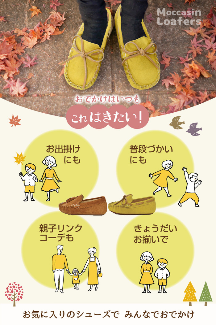 お出掛け が快適楽しくなる大人顔負けデザインの モカシンローファー