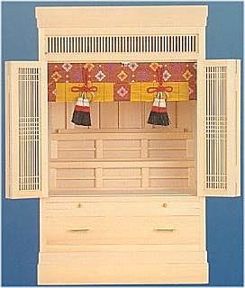 商品の詳しいご案内 材質 主材:尾州檜 外寸 外寸/100(高)×62(巾)×56(奥) 備考 御翠簾付神具は含まれていません 画像をクリックすると詳細画像をご覧いただけます
