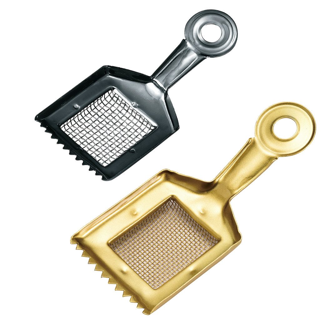 灰ならし 掃除もできる 網付き 灰ならし 金属製 (金塗装/メタリックシルバー) 仏具 香炉の燃え残りも同時に取れる 網付タイプ幅5cm 台紙付袋入