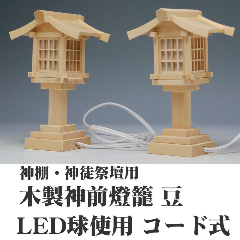 木製神前灯篭(豆)平型コード式(対入)小小LED球(球交換可)春日燈篭木製品(神前燈籠灯籠燈篭神前灯ろう)/神棚_お札_和モダン_電気_電球_燈籠