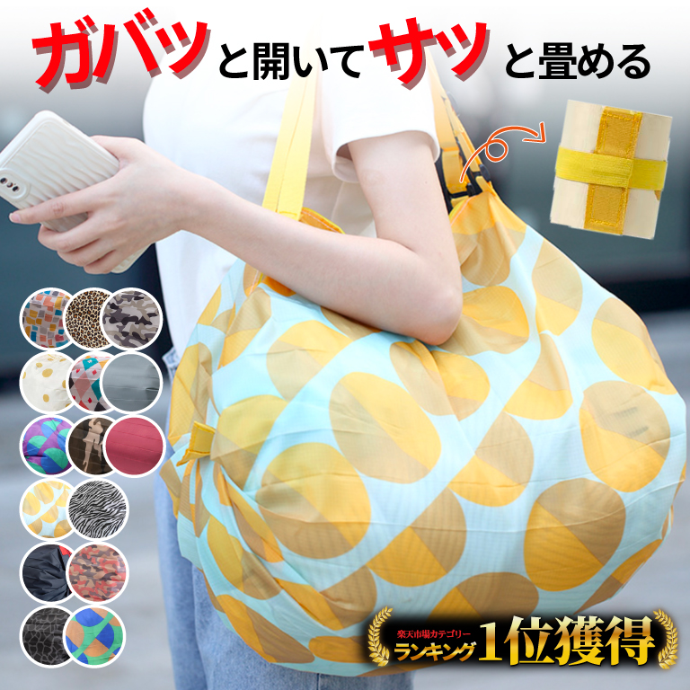 myabest1位受賞 エコバッグ 折りたたみ チャック付き ボストン型 簡単 おしゃれ 大容量 コンパクト 折り畳み 買い物袋 防水 サブバッグ 旅行