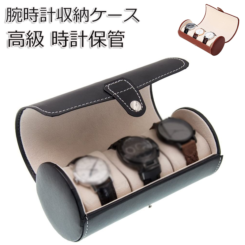 時計収納ケース 腕時計用ケース3本用 3本 円筒形 ブラックPU革制 展示 ウォッチケース おしゃれ 腕時計