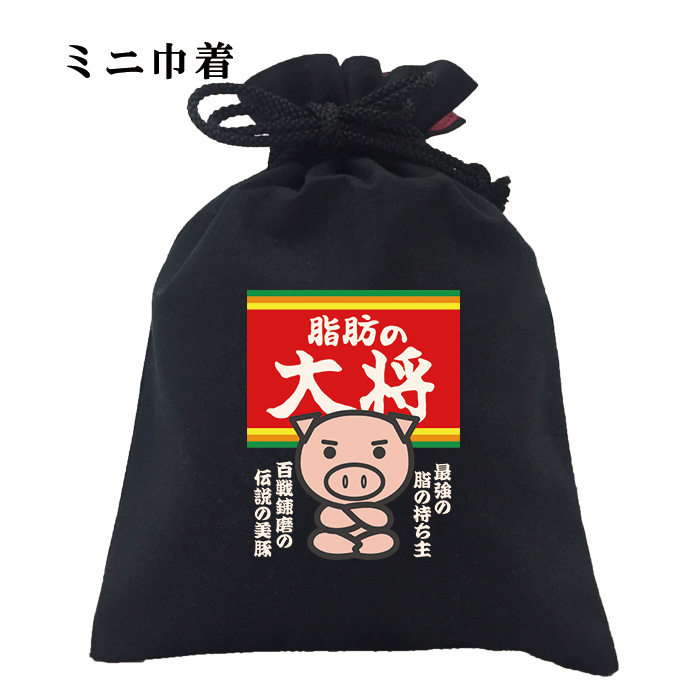 パロディ おもしろ 巾着 和柄 開運 元祖豊天商店 最強の脂の持ち主に…?! 脂肪の大将 小物入れ 美豚 B01
