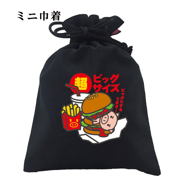 おもしろ 巾着 和柄 開運 元祖豊天商店 ピッグりするうまさ! 超ピックサイズ 小物入れ 美豚 B01