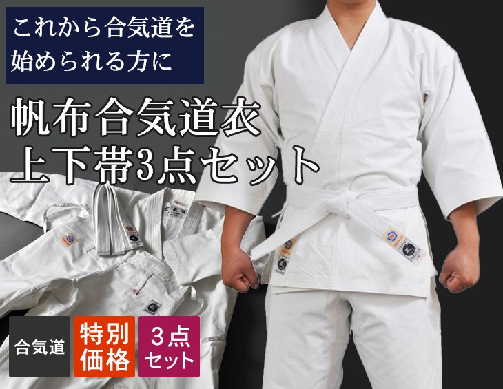 合気道 道着 セット 帆布合気道衣 上下帯3点セット 上衣・パンツ・帯 合気道着