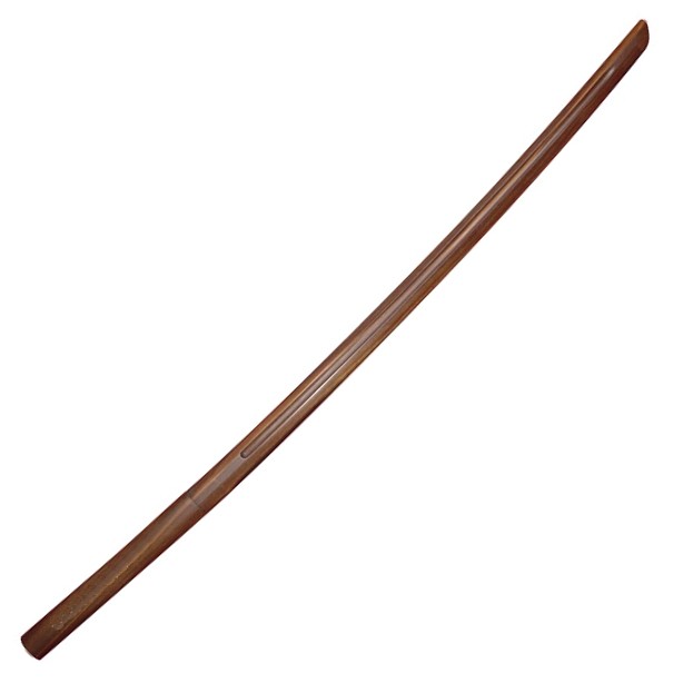 宮崎県都城市の伝統工芸士で現代の名工の荒牧氏の手によるスヌケ製の樋入木刀大刀です。刀身に溝(樋)が入っているので木刀を振ると空気を切る音が発生します。その重量感と美しく個性的な木目、無着色磨き仕上げによる滑らかな独特な木肌本来の感触は、もはや武道具というより芸術品です。