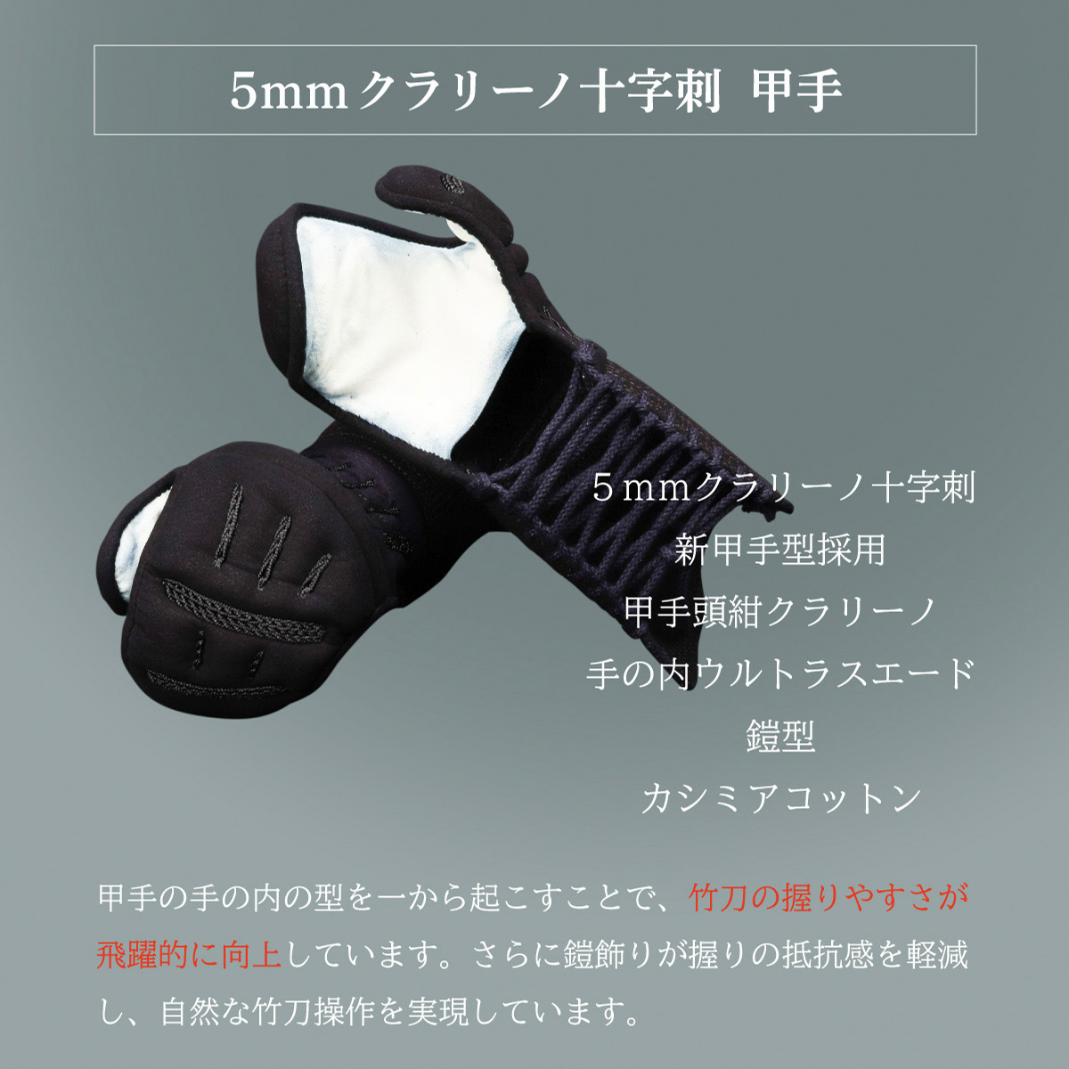 | 甲手 | 5mmクラリーノ十字刺 新甲手型採用 甲手頭紺クラリーノ 手の内ウルトラスエード 鎧型 カシミアコットン |