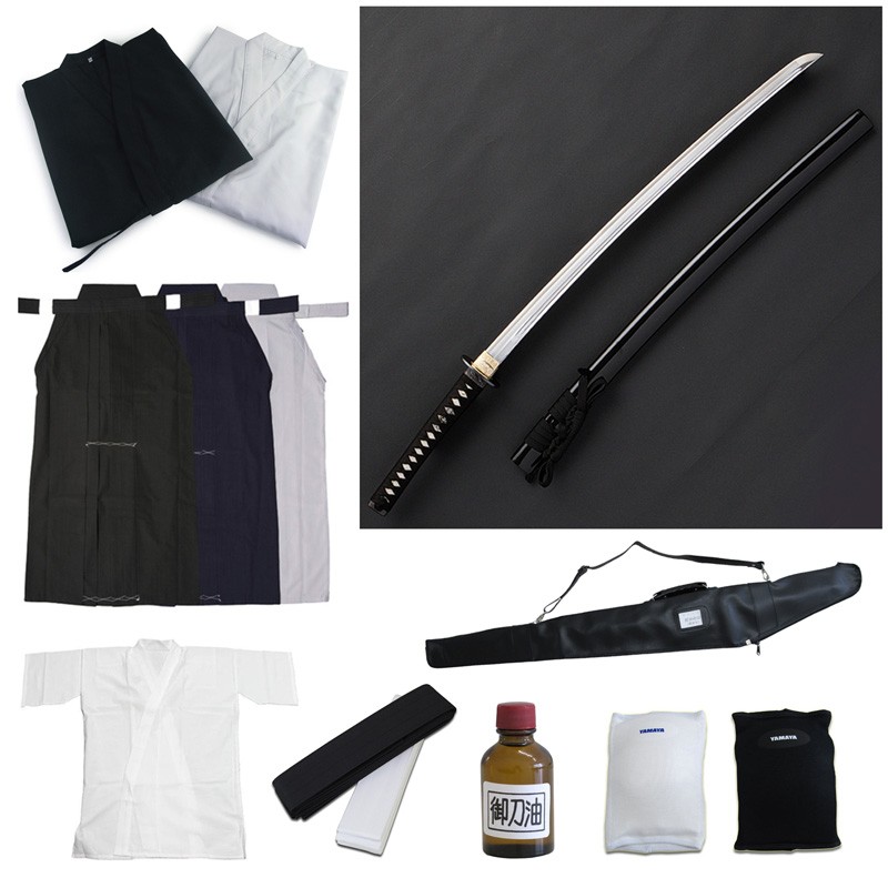 居合道をはじめるのに必要な、居合刀・刀剣バッグ・刀剣油・居合衣・襦袢・袴・帯・膝サポーターの8点が全てセットになった超お買い得な居合セットです。
