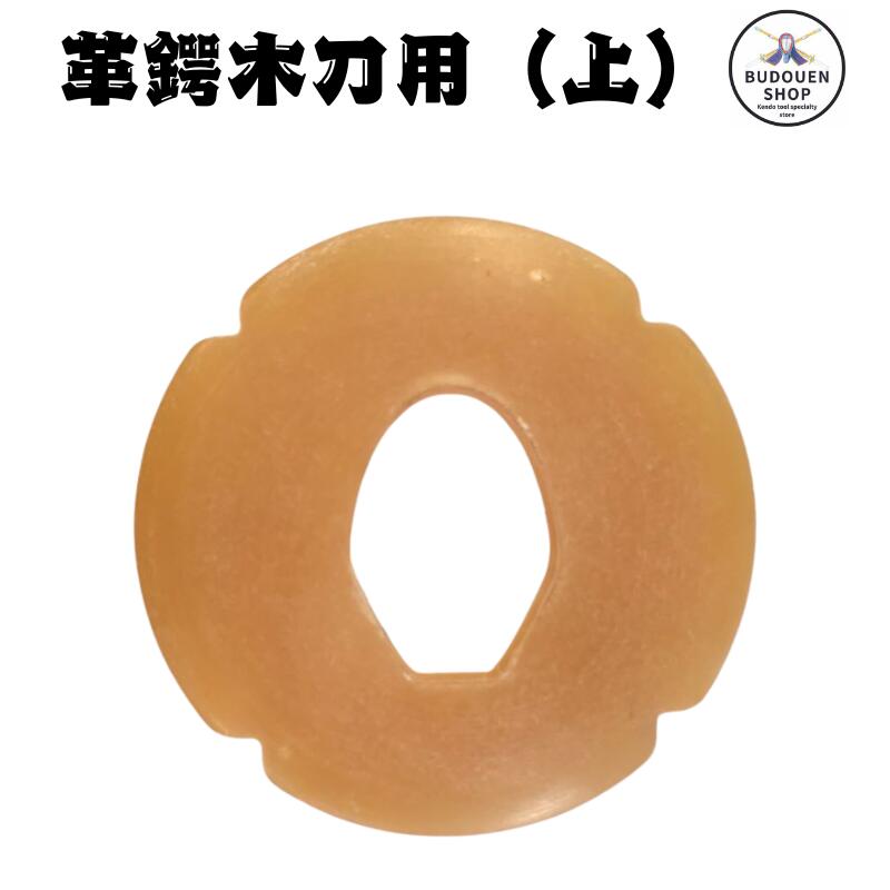 高級革鍔 お取り寄せの為、納期2日〜5日頂きます。国内 革鍔製造元よりお取り寄せいたします。木刀用の革製の鍔です。サイズは大刀と小刀用からお選び頂けます。鍔止めゴムは別売りです。【仕様】材質:牛革製重量:約30g【注意事項】・こちらの商品は普及型木刀・高級品木刀といった一般的な形状の木刀用となっております。流派別木刀や素振木刀等は太さが異なる為、取り付け出来ません。・木刀は一本一本手作りの為、お客様にて鍔の穴を多少、削って調整して頂かないと刃区(はまち)まで届かないこともあります。