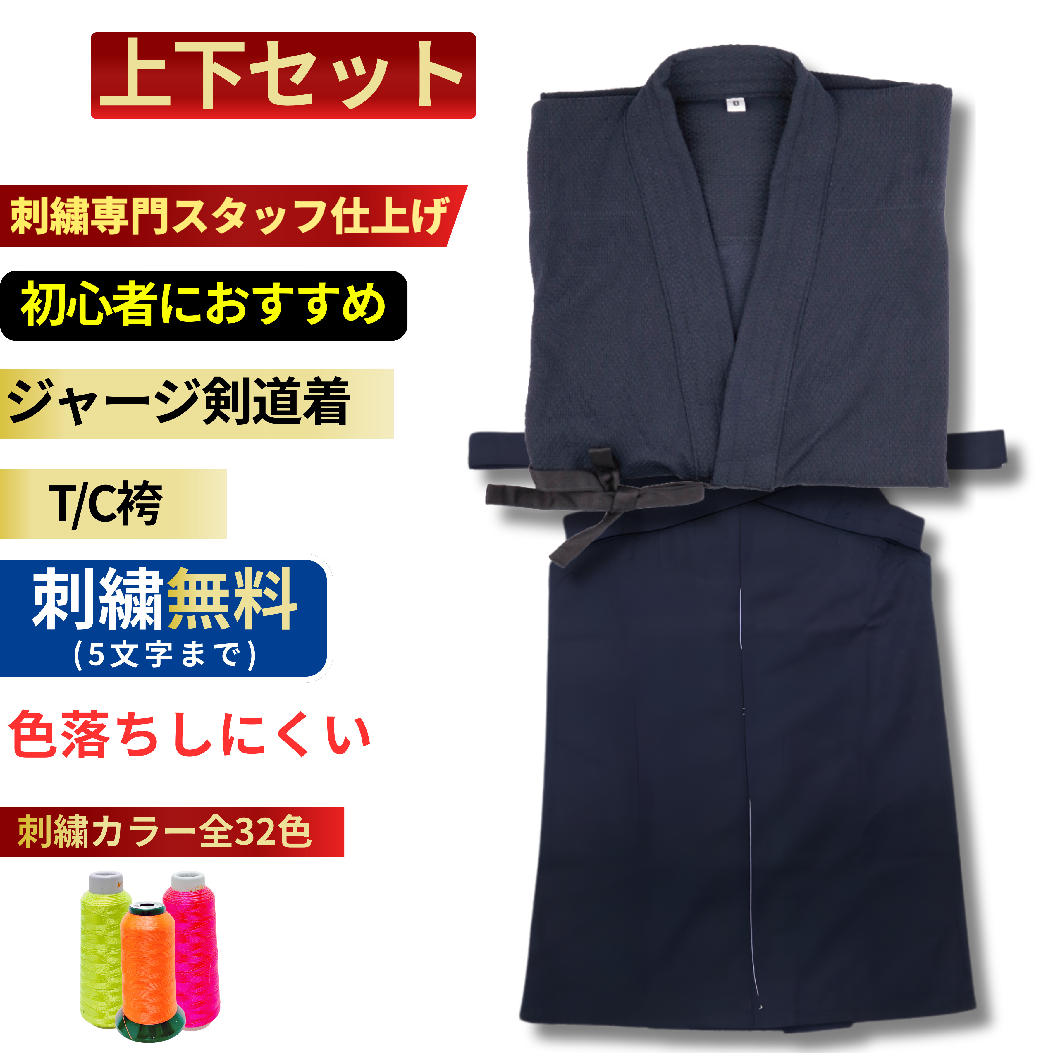 剣道 道着 + 袴 ジャージ剣道着 + TC袴 剣道着 セット 初心者向け 送料無料(沖縄除く) 薄手 軽量 夏用 涼しい 刺繍ネーム5文字まで無料