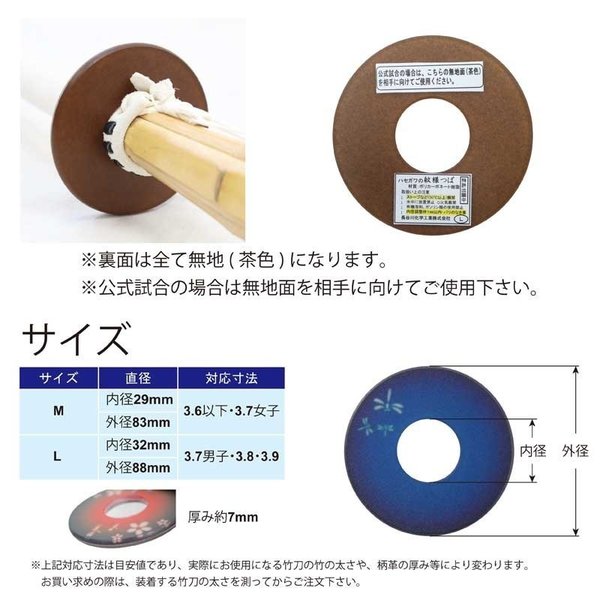 剣道ツバ 剣道ツバ 竹刀ツバ 紋様鍔ワンポイントとんぼ エンジ 青 紫 M/L