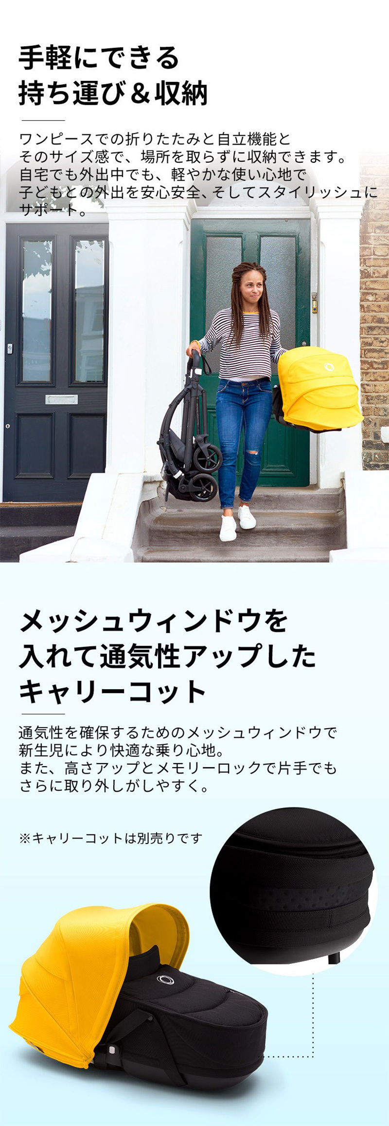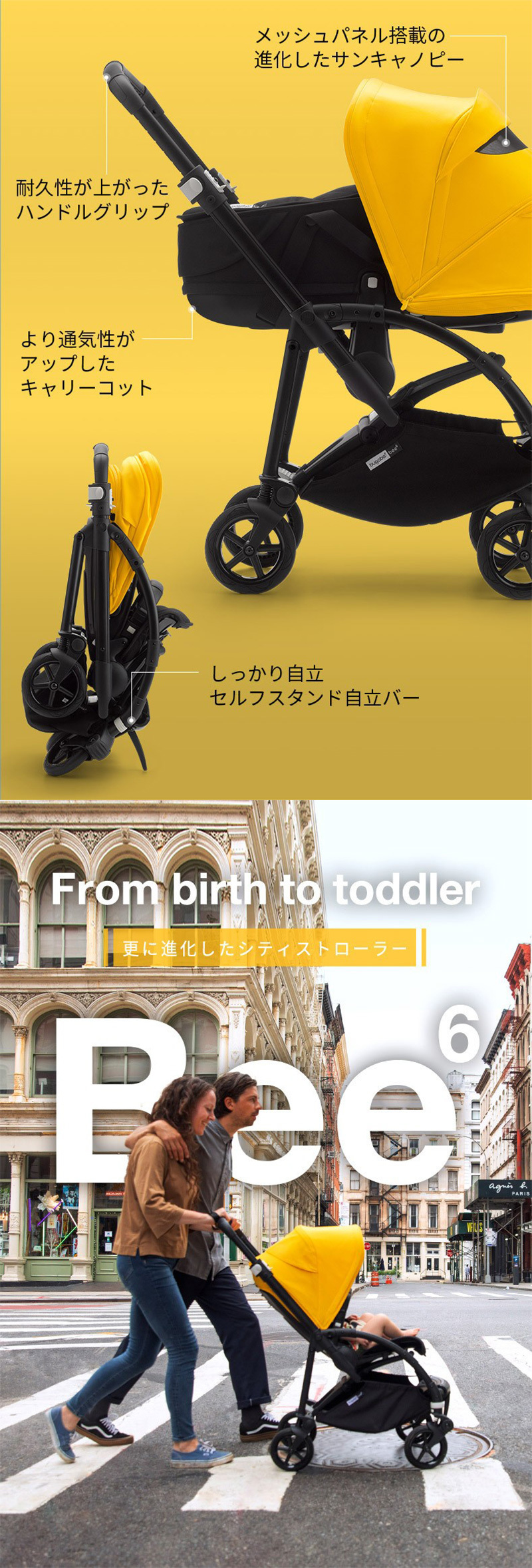 ・混み合う街中の歩道でも楽に移動 ・人間工学に基づいたシートは通気性に優れ、お子さまの体温調節をサポート ・パンクレスタイヤの車輪で、街中でも押しやすく扱いやすい ・高性能サスペンションで、なめらかな乗り心地と快適なお昼寝を実現 ・コンパクトな折りたたみ式と一体型のセルフスタンドで収納も楽々 |