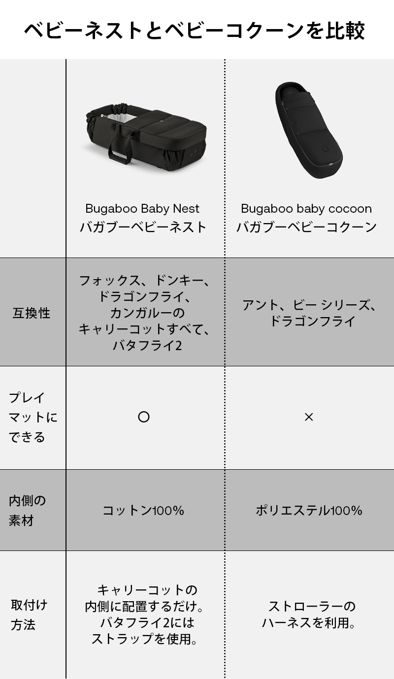| 北欧やドイツでは定番育児アイテムの、ベビーネスト。 バガブーからも、持ち運び可能で超快適なバガブー ベビーネストを発売します。 天然コットン素材のライニングで、 お子さまは至福のお昼寝タイム。 キャリーストラップがついているので、寝ているお子さまを邪魔することなく移動させることができます。 家でもお出かけ先でも、拡げればプレイマットに早変わり。 |