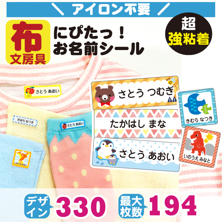 名前シール お名前シール 布用 ノンアイロン 強粘着 ネームシール 布に貼れる アイロン不要 洋服 文房具 保育園 小学校
