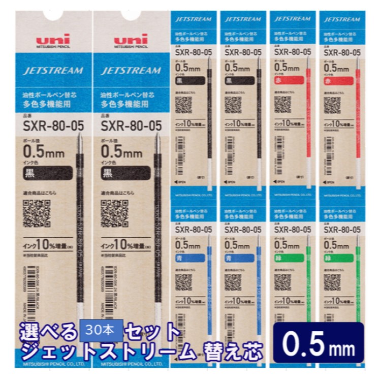 ジェットストリーム 替芯【紙パッケージ】 30本セット(1色10本単位) 0.5mm