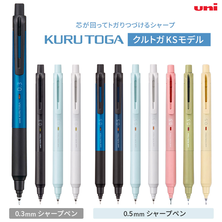 0.3mm / 0.5mm| 特徴 | ■【クルトガ機構】で芯が回ってトガりつづけるシャープペン 芯が均一に摩耗してトガり続け、ずっと細い文字で書けることができます! 芯の粉が出にくいのも特徴。ノートもすっきり、きれいに書けます。