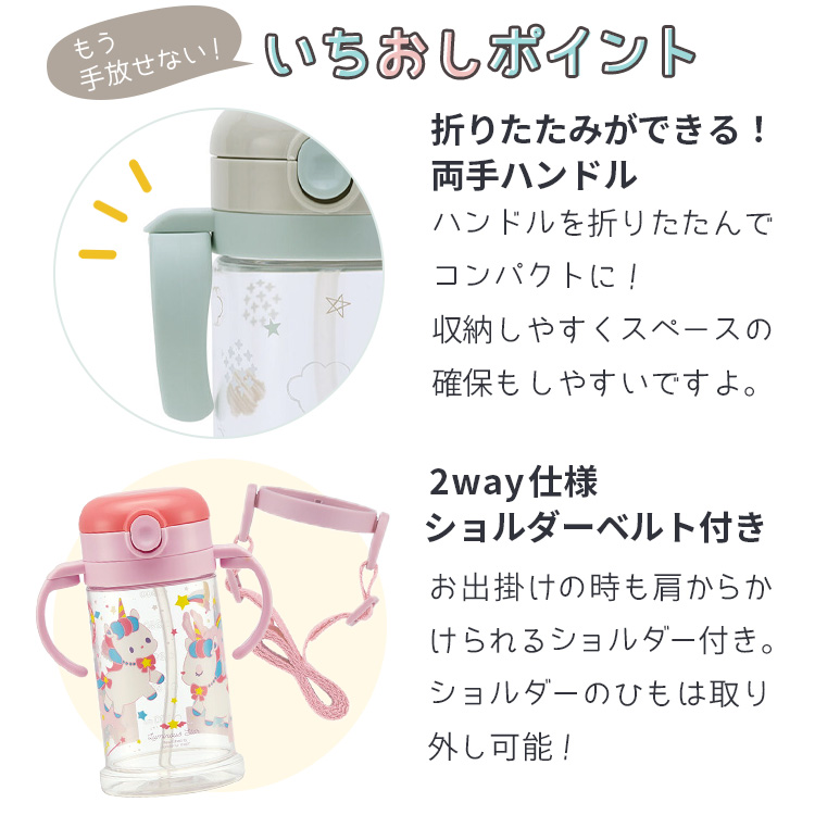 ストローマグ 名入れ 折りたたみ式 ショルダーベルト付き ベビーマグ 水筒 370ml 赤ちゃん 名前入り