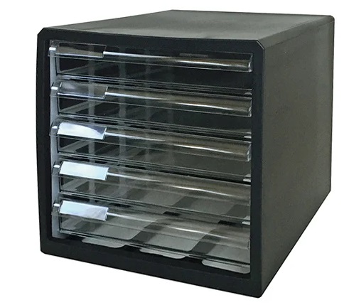 アズワン カラーレターケース ブラック 浅型5段 M5 7-3088-01 《実験設備・保管》