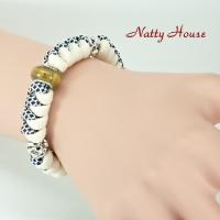 ブレスレット「パラコード・タイガーアイ・ネイビーダイヤ×アイボリー」手編み 天然石