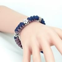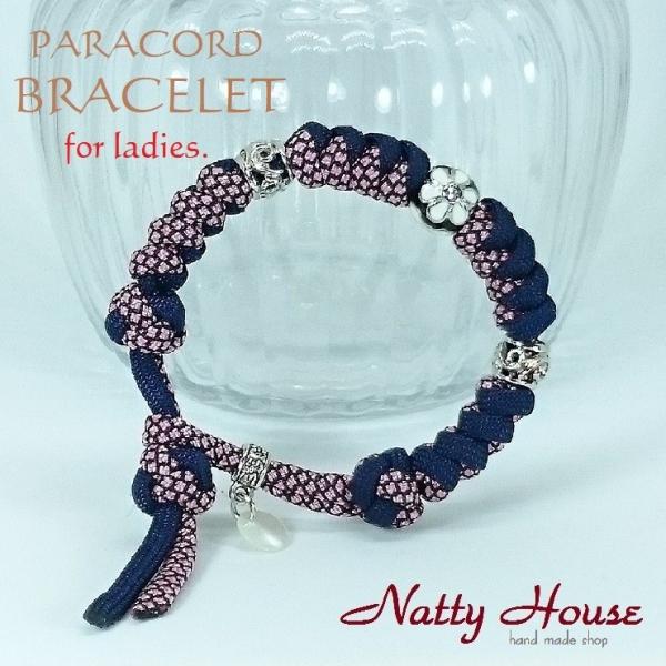ブレスレット「パラコード・花びら型メタルビーズ・ネイビー」手編み