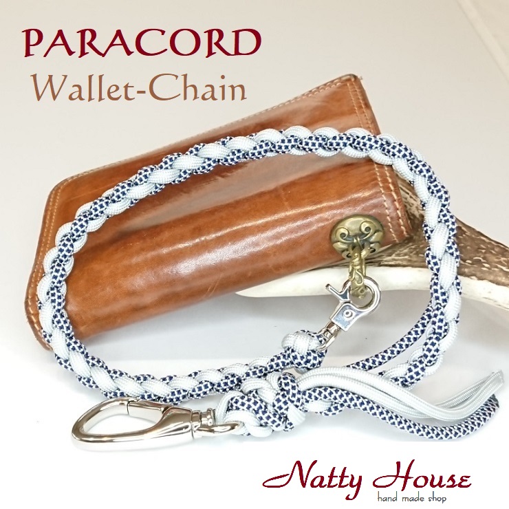 ウォレットチェーン 四つ編み パラコード パラシュート バイカー ハーレー アメカジ アウトドア 手編み ハンドメイド