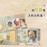 | カスタマイズ可能な部分 | (1)おじいちゃん・おばあちゃんのイラスト選択 (2)ストーリーを一部修正(好き嫌いを選べる) (3)お孫さんの数を変更 (4)お孫さんとおじいちゃん・おばあちゃんの写真の挿入 (5)特別なメッセージの記載 | ||