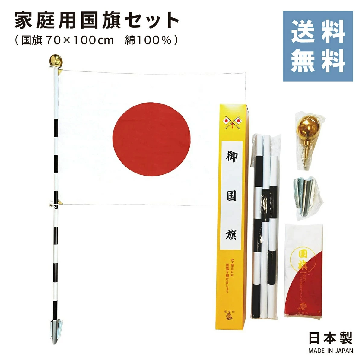 【あす楽】【送料無料】家庭用 国旗セット 70×100cm 綿100% 日本製 日の丸 セット 式典 表彰 オリンピック 応援 祝日 日本代表 公式行事 イベント 学校 綿 店舗 旗日 屋外 自宅 簡単