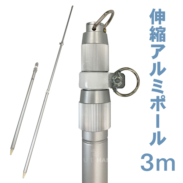 旗用 伸縮アルミポール 3m 3段伸縮 各種旗・幕・こいのぼりなどに 春闘 国旗 団旗