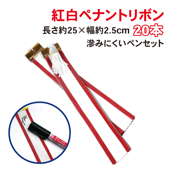 紅白ペナントリボン Eサイズ 25cm 20本+滲みにくいペンのセット
