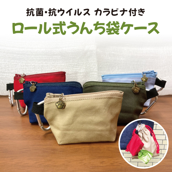 倉敷紡績株式会社(KURABO)の抗菌・抗ウィルス機能繊維加工技術CLEANSE(R)の生地を使用した当店オリジナルのうんち袋ケースです。