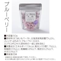 原材料:さつまいもペースト、北海道産馬鈴薯でんぷん、メレンゲ、はちみつ、ブルーベリーエキス、エゾウコギエキス(原材料の一部に卵を含む)