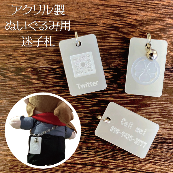 ぬいぐるみ 迷子札 アクリル 名札 タグ 連絡先 アカウント名 QRコード チルぬい ともぬい ぬい撮り