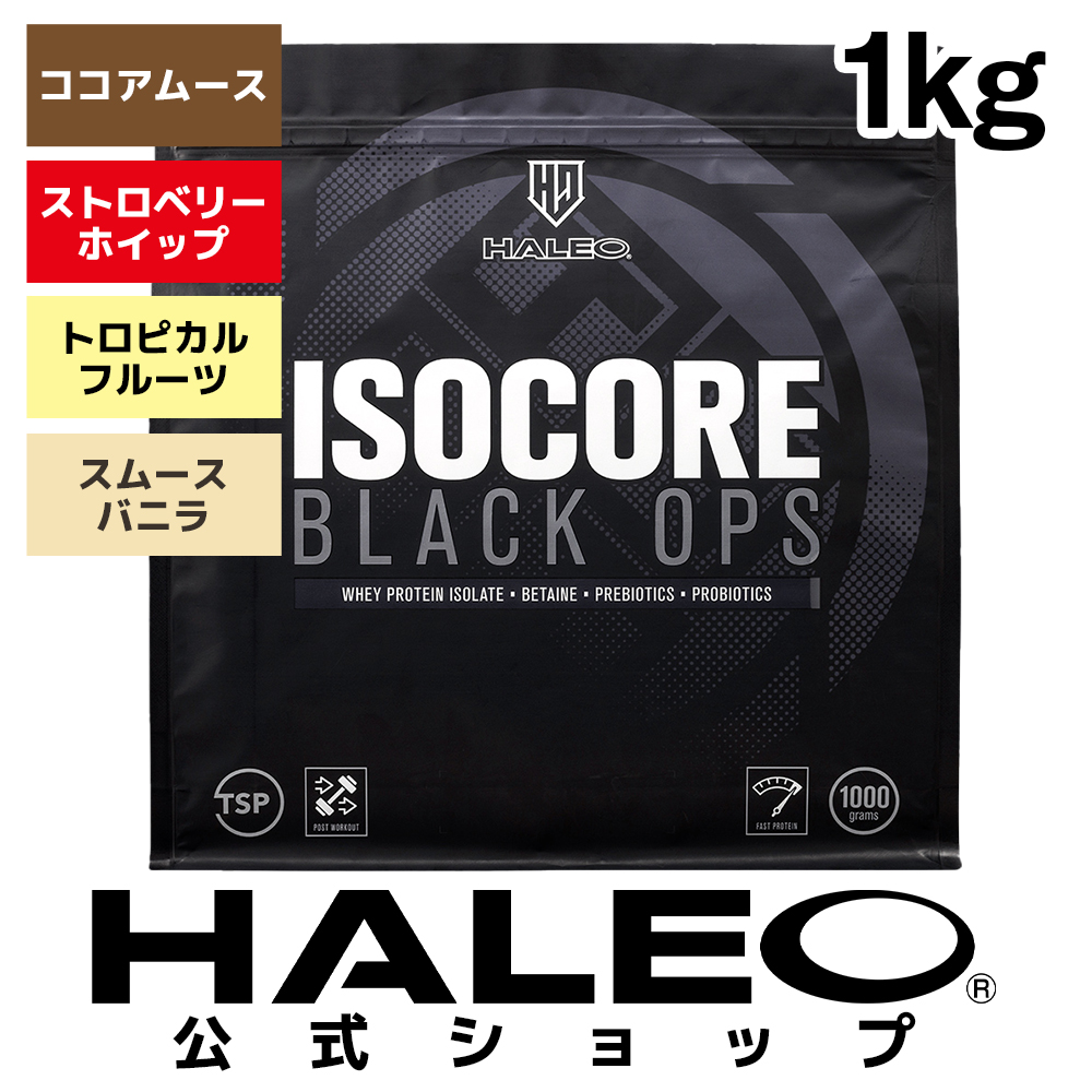 HALEO TOP TEAMのエリートアスリートのために開発されたプロテインがアイソコアブラックだ。たんぱく質の吸収を考え研究を行い、クロスフロー精密ろ過と呼ばれる技術を用いた結果、余分な炭水化物や脂質をほとんど含まない、たんぱく質含有量約90%のホエイプロテイン(WPI)が誕生した。1食分で良質なたんぱく質を約20g摂取できる。パフォーマンスをサポートするパワフルな成分ベタインも強化配合。また、スポーツニュートリションプログラムでは見過ごされることが多いカラダの中のサポートにも配慮し、プロバイオティクス乳酸菌と、乳酸菌と相性の良いイヌリンを配合した。トップクラスのパフォーマンスとカラダづくりのバックアップに適したプロテインサプリメントだ。
