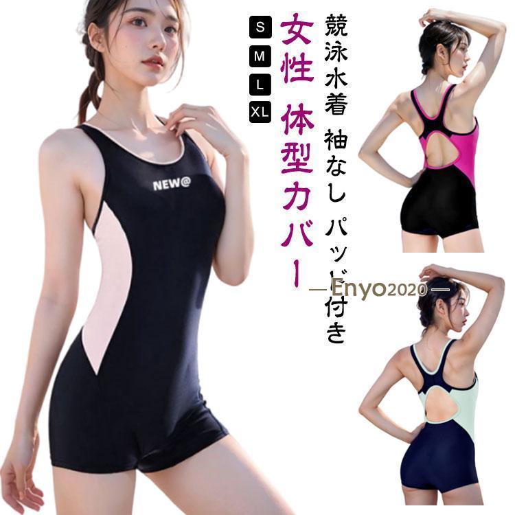 スイミング オールインワン 競泳水着 フィットネス タンキニ 女性 体型カバー タンクトップ 袖なし スイムウェア 水着 練習用 レディース パッド付