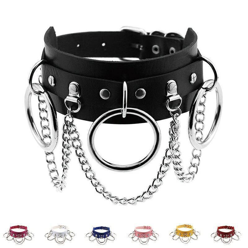 チョーカー 黒 首輪 ネックレス パンク ロック V系 ゴスロリ コスプレ イベント ダンス衣装 レザー 革 リング レディース メンズ 男女兼用 ブラック