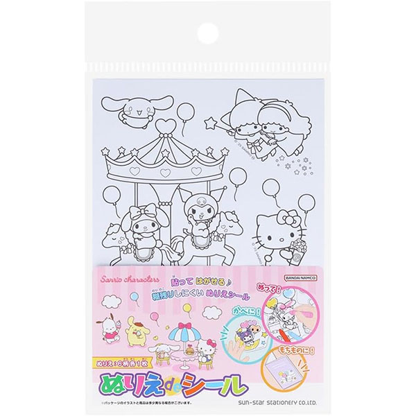 【10個までメール便OK】 サンスター文具 サンリオキャラクターズ ぬりえdeシール 6柄各1枚 ぬりえ シール 7351005A