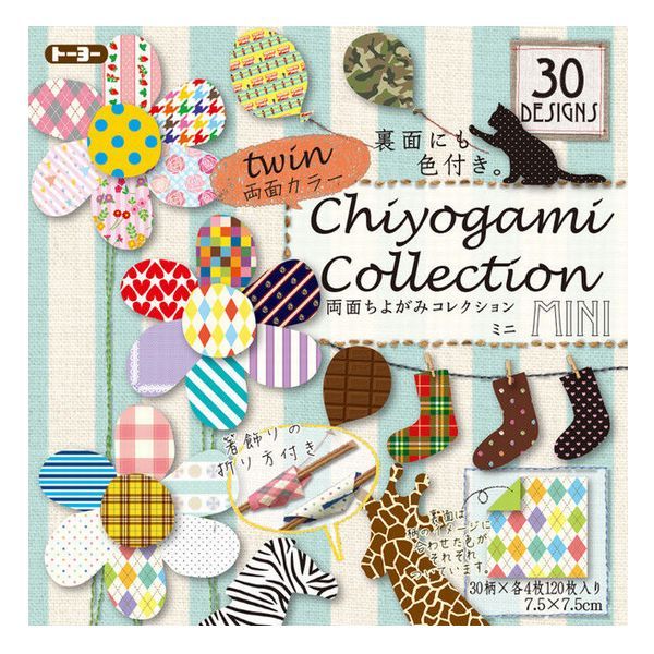 【6個までメール便OK】トーヨー 両面ちよがみコレクション ミニ(7.5) ケース付 30柄×4枚/120枚入[7.5×7.5cm] 018511 千代紙/おりがみ/折り紙 ラッピング