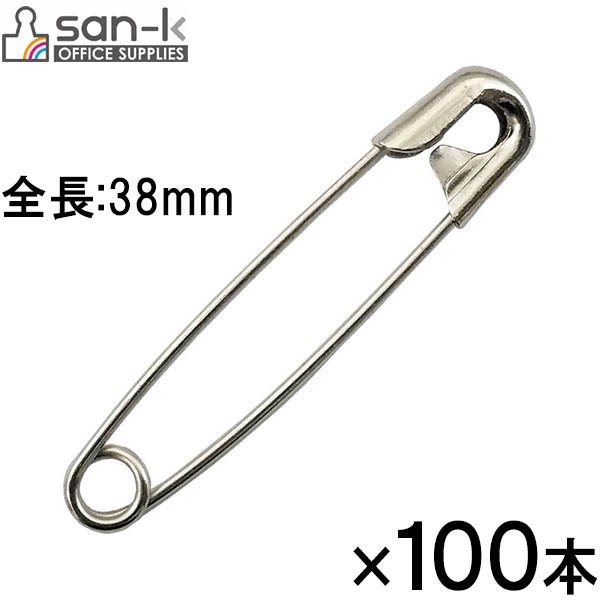 サンケーキコム ステンレス製安全ピン 全長38mm 100本入り【AN-3S】