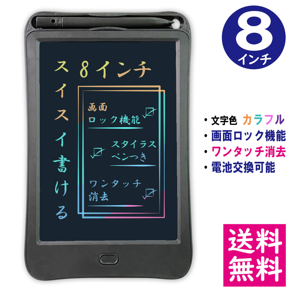 【メール便 送料無料】 LCD液晶 レインボーカラー 電子メモパッド 8インチ [本体/ブラック] デジタルメモ お絵かきボード 【他の商品との同梱不可】