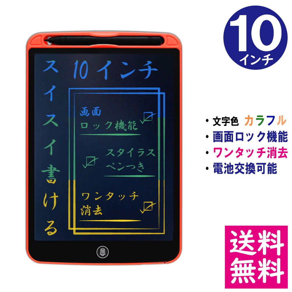 【メール便 送料無料】 LCD液晶 レインボーカラー 電子メモパッド 10インチ [本体/レッド] デジタルメモ 電子お絵かきボード 【他の商品との同梱不可】