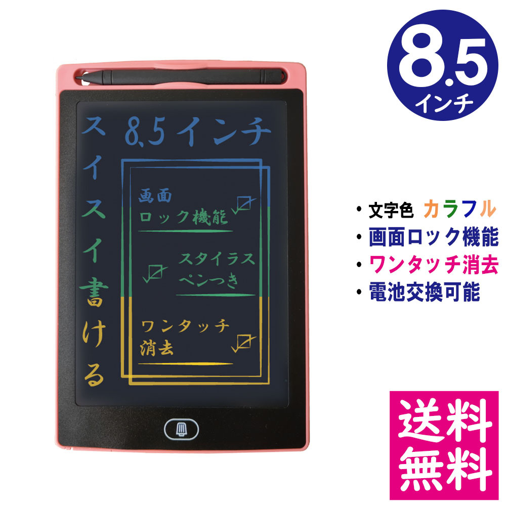 【メール便 送料無料】 LCD液晶 レインボーカラー 電子メモパッド 8.5インチ [本体/ピンク] デジタルメモ 電子お絵かきボード 【他の商品との同梱不可】