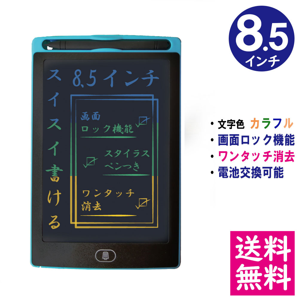 【メール便 送料無料】 LCD液晶 レインボーカラー 電子メモパッド 8.5インチ [本体/スカイブルー] デジタルメモ 電子お絵かきボード 【他の商品との同梱不可】