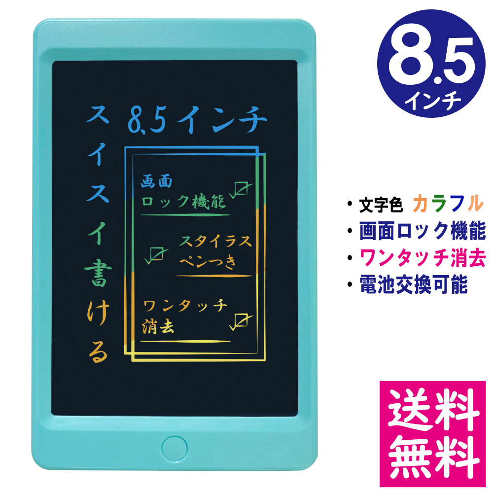【メール便 送料無料】 LCD液晶 レインボーカラー 電子メモパッド 8.5インチ [本体/スカイブルー] デジタルメモ 電子お絵かきボード 【他の商品との同梱不可】